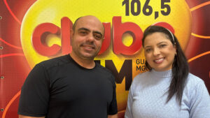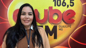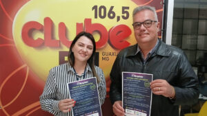 nos estúdios da Clube FM Guaxupé a vice-prefeita, Renata Valéria Rocha (Renatinha), para falar sobre o Arraiá do Café que começa nessa quarta-feira, dia 18, no Centro de Eventos Nabih Zaiat.